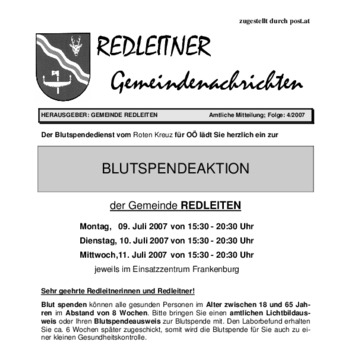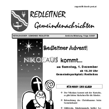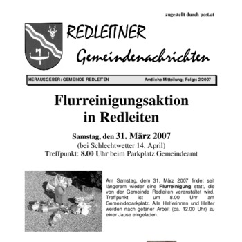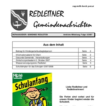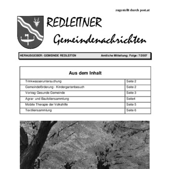 Die Gemeindenachrichten werden von der Gemeinde Redleiten mit freundlicher Genehmigung zur Verfügung gestellt.