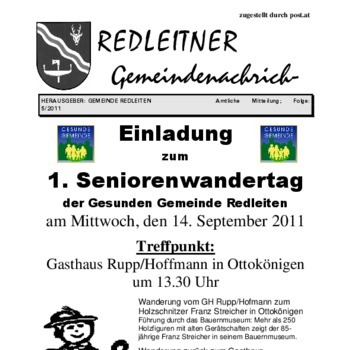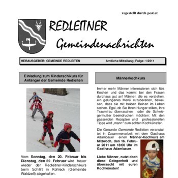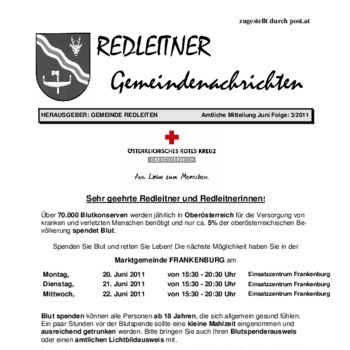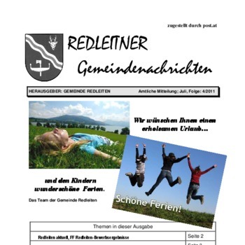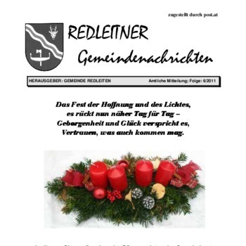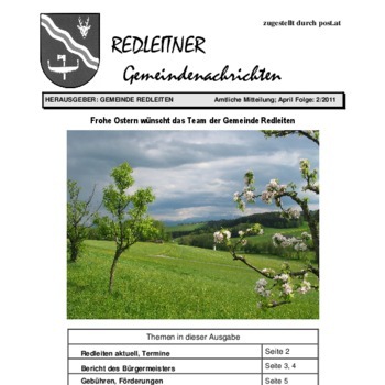 Die Gemeindenachrichten werden von der Gemeinde Redleiten mit freundlicher Genehmigung zur Verfügung gestellt.