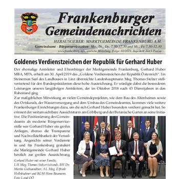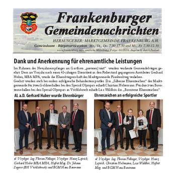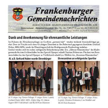 Die Gemeindenachrichten werden von der Marktgemeinde Frankenburg mit freundlicher Genehmigung zur Verfügung gestellt.