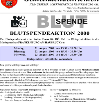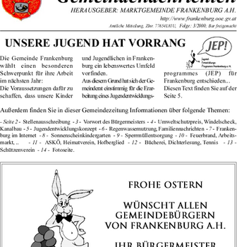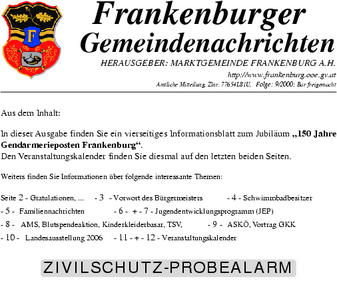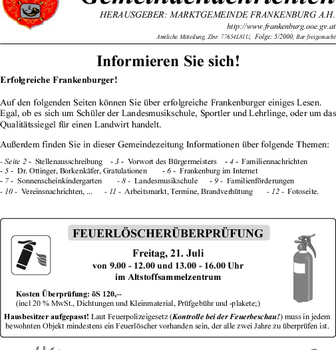 Die Gemeindenachrichten werden von der Marktgemeinde Frankenburg mit freundlicher Genehmigung zur Verfügung gestellt.