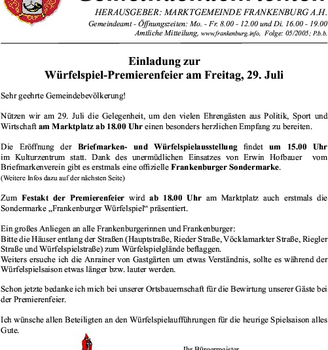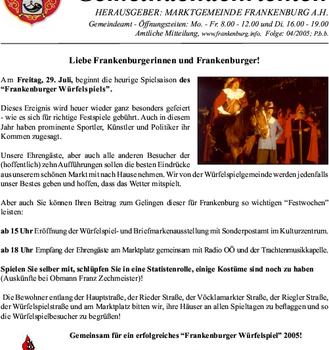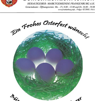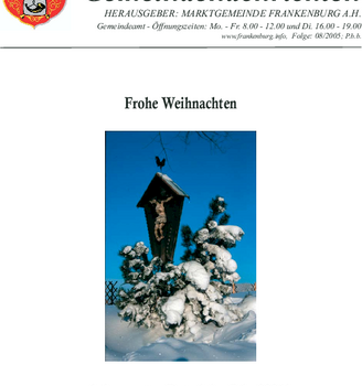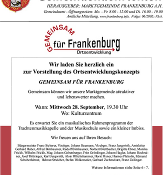 Die Gemeindenachrichten werden von der Marktgemeinde Frankenburg mit freundlicher Genehmigung zur Verfügung gestellt.