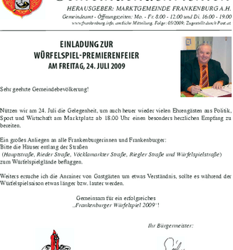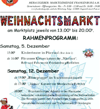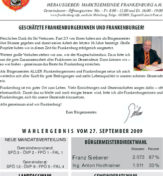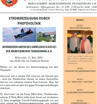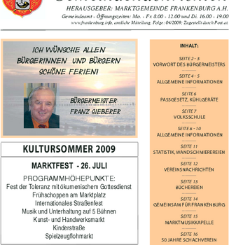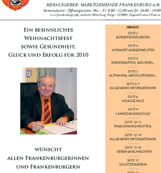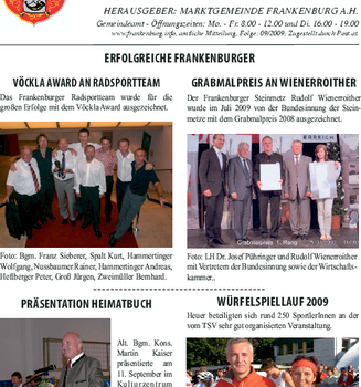 Die Gemeindenachrichten werden von der Marktgemeinde Frankenburg mit freundlicher Genehmigung zur Verfügung gestellt.