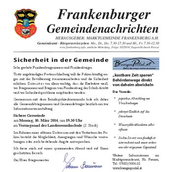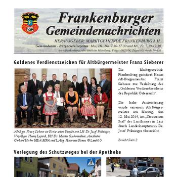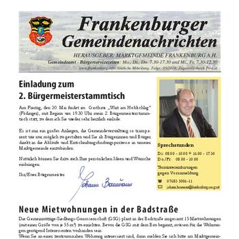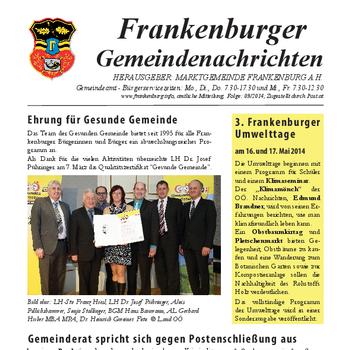 Die Gemeindenachrichten werden von der Marktgemeinde Frankenburg mit freundlicher Genehmigung zur Verfügung gestellt.