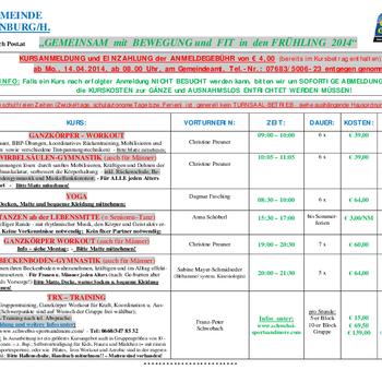 Gesunde Gemeinde - Bewegungsprogramm Frühjahr 2014