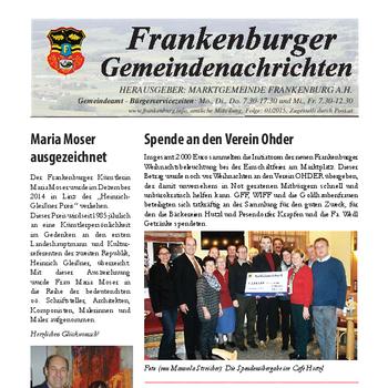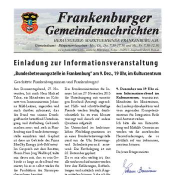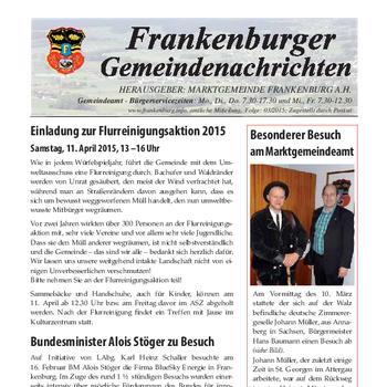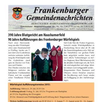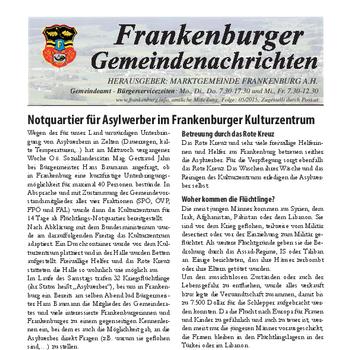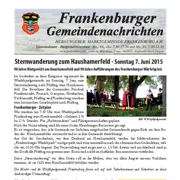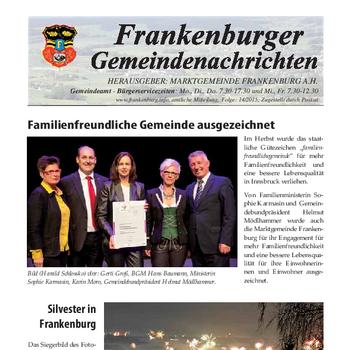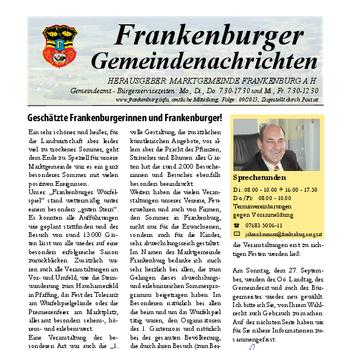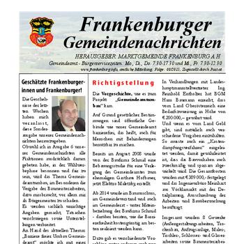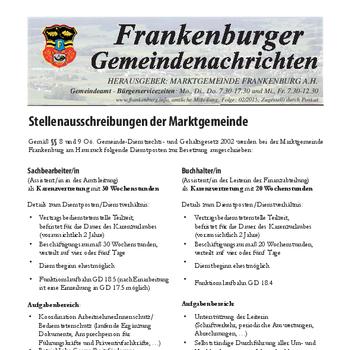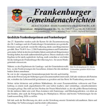 Die Gemeindenachrichten werden von der Marktgemeinde Frankenburg mit freundlicher Genehmigung zur Verfügung gestellt.