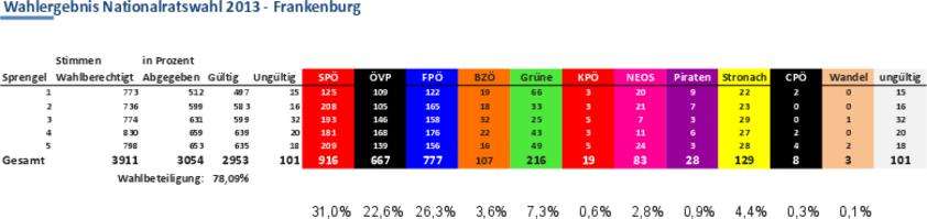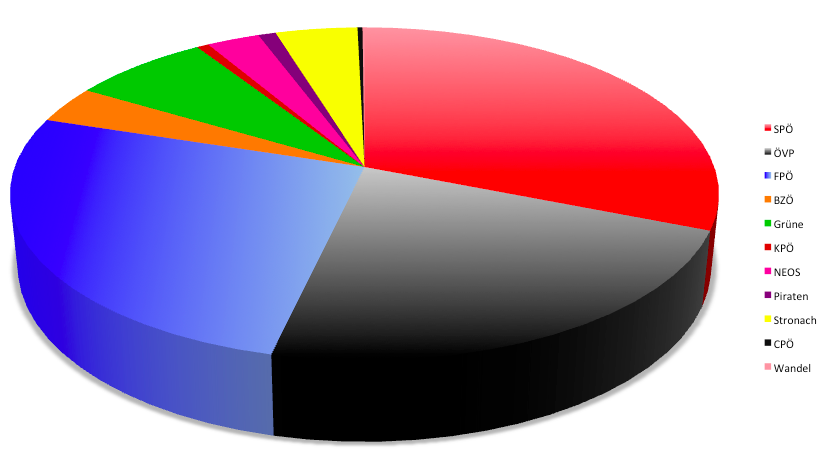 Das vorläufige Endergebnis der Nationalratswahl 2013 (ohne Wahlkarten) liegt bereits vor.