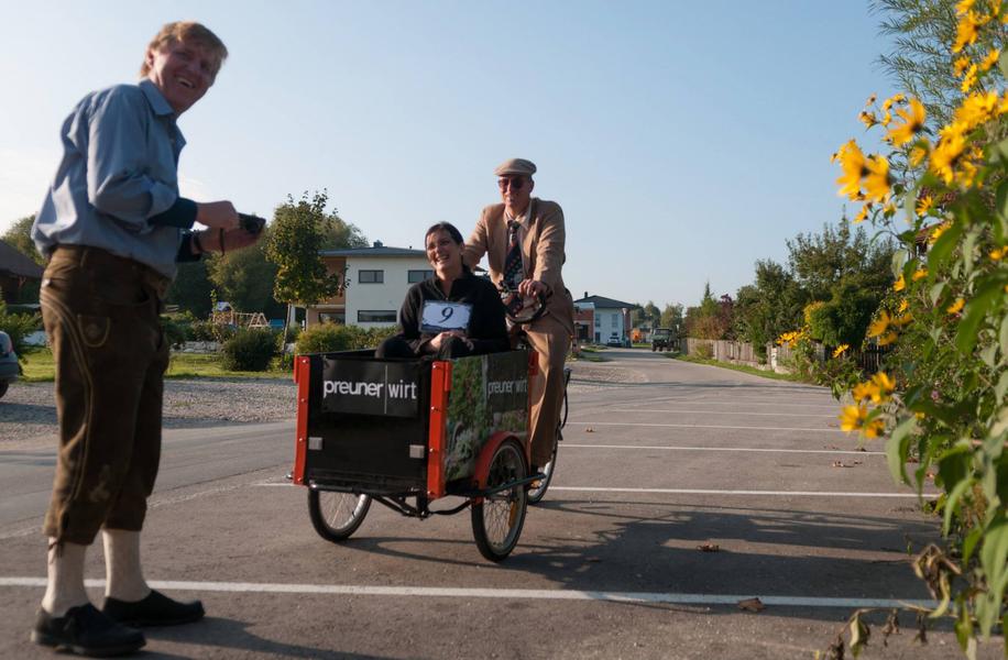 Da man mit einem Waffenrad nicht nur sehr schnell sondern auch sehr gemütlich durch die Lande fahren kann gab es auch eine Gemütlichkeitswertung. Die Waffenradler Egbert Plakolm und Martin Eberl erzielten mit einem Zwischenstopp beim Gasthaus "Wirt am Riegl" wertvolle Punkte und holten hier Gold und Silber.