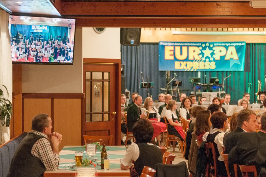Eine fest installierte Kamera filmte den Abend mit und zeigte die Bilder gleich auf einem großen Flachbildschirm, so hatten alle Besucher einen guten Blick auf die Mitternachtseinlage. Erwin Preuner installierte mit seiner Firma smart media & technology weiters auch eine Verbindung zu den bestehenden Bildschirmen im Gasthaus, wo pünktlich zur Mitternachtseinlage auch diese übertragen wurde.