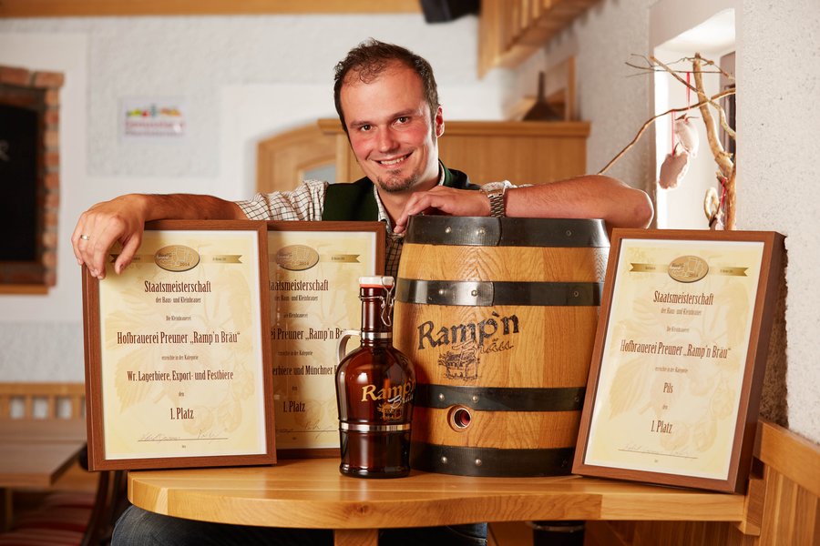 Der 34-Jährige braut seit 2005 sein eigenes Bier, etwa 100 Hektoliter pro Jahr. Dabei probiert er immer wieder neue Sorten aus und entwickelt seine eigenen Rezepte und Methoden. Von Mai bis Oktober gibt es die preisgekrönten Biere im Bierheurigen Ramp’n Bräu in Vordersteining.