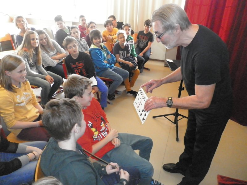 Der Zauberkünstler Josef Vogtenhuber begeisterte die Schülerinnen und Schüler der NMS Frankenburg mit verblüffenden Tricks und Denksportaufgaben. Er überraschte sie mit physikalischen Phänomenen und zeigte ihnen auch einige Kunststücke für Zauberlehrlinge.