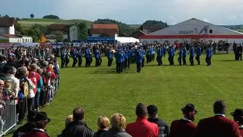 Showelemente wie ein Doppelstern mit unterschiedlichen Bewegungen, ein Karo, folgend ein Quadrat welches sich in ein V bis zum X und zum Abschluss in zwei gegenüberliegende Linien auflöste, Eindrucksvoll bewegten sich diese aufeinander zu und der Ausmarsch begleitet vom Reinermarsch folgte.