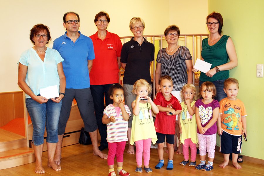 Die Krabbelstube und der Kindergarten Frankenburg bekamen von der Würfelspielgemeinde eine großzügige Spende, damit aus den Kindern wieder aktive Darsteller für das Würfelspiel heranwachsen können. Der Betrag stammt aus der Premierenfeier 2013.