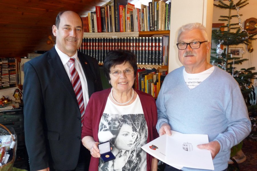 Foto (von Gerhard Huber): Bürgermeister Kons. Johann Baumann besuchte Christine und Helmut Hofer zur Goldenen Hochzeit.