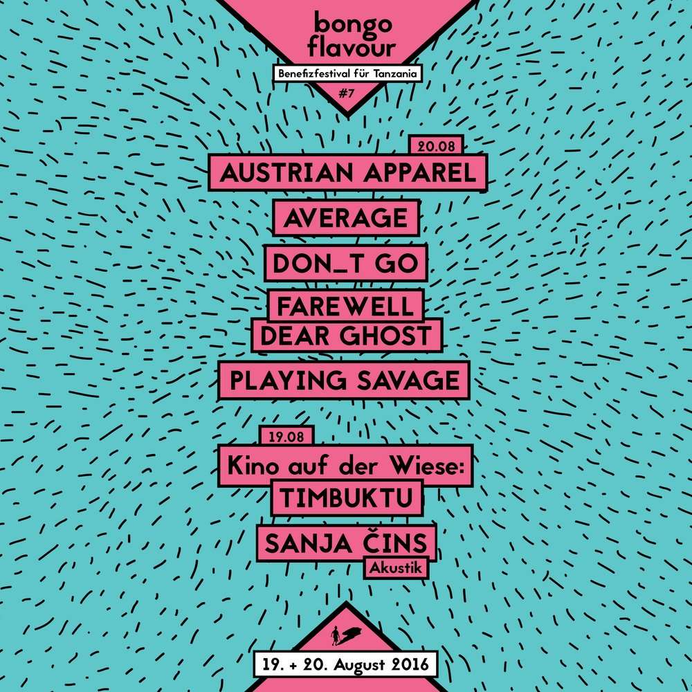 Die großartigen Indie-Rock Bands Farewell Dear Ghost und don_t go und der Linzer HipHopper Average werden am Samstag ordentlich einheizen. New Yorker Soul Power kommt von Playing Savage. Zu guter letzt gibt es ein Live-Techno Set von Austrian Apparel.