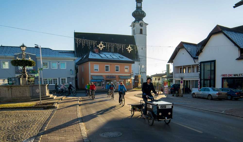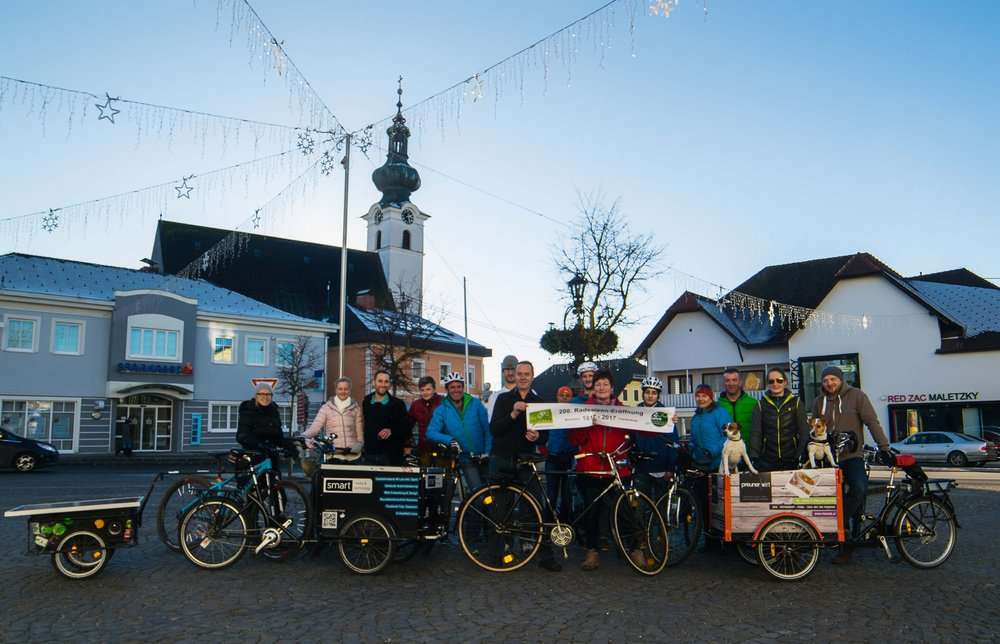 Die feierliche Eröffnung in Frankenburg wurde mit kostenlosem alkoholfreien Punsch vom Preuner Wirt begossen. „Bei strahlendem Sonnenschein und Walzerklängen ins neue Jahr radeln“, gab Mitveranstalterin Gabriele Preuner als Motto aus – und 20 Teilnehmer folgten der Einladung. Dieses Jahr kam noch ein besonderes Jubiläum dazu: 200 Jahre ist es her, dass Karl Freiherr von Drais den ersten Vorgänger unseres heute alltäglichen Fortbewegungsmittels erfunden hat.