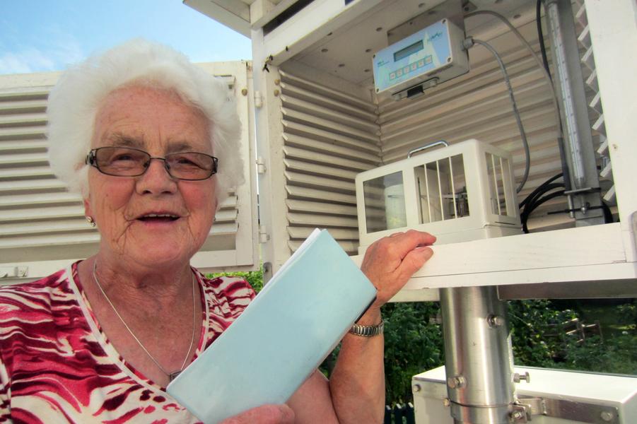 „Der Regen fällt jetzt heftiger und in kürzerer Zeit“, stellt auch Theresia Födinger als Auswirkung des Klimawandels fest und legt als Beweis die Aufzeichnungen der Hochwässer in Frankenburg seit 1958 vor. Das letzte am 6. Juni steckt ihr noch in den Knochen. Zwar kam der Haselbach vor ihrer Wetterstation nur leicht über das Ufer, aber im Keller hatte sie trotzdem Wasser. 57,7 Liter Regen hatte sie in 20 Minuten gemessen und wundert sich, dass in den Zeitungen „nur“ von 40 Litern berichtet wurde, wo sie doch so genaue Aufzeichnungen macht. Und auf die ist Verlass, seit mehr als 25 Jahren.
